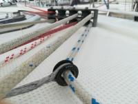 My traveller has all but died and I can't really adjust it anyway as the cleats are on the ends of the traveller on the other side of the sprayhood, so I'm going to remove it, put a u-bolt at each end in the strong points, and make up a vectran bridal instead.